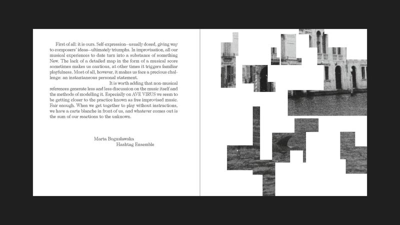Design for the release by Hashtag Ensemble. The improvised music is inspired by the "nature heals itself" stories – often fake news – that were prevalent during the early Covid pandemic. Dolphins in Venice, species thought to be extinct resurfacing, monkeys invading the streets in Thailand, etc...